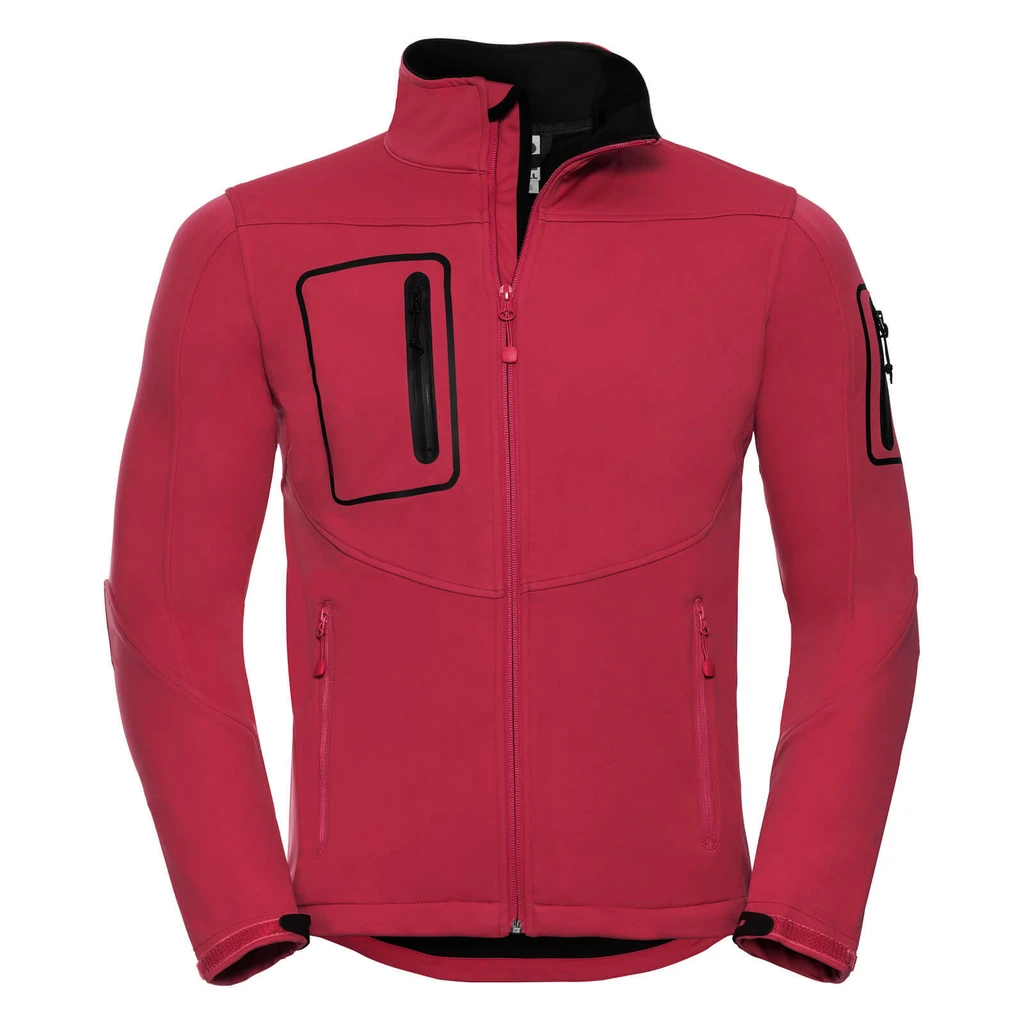 Prodyšná (do 5.000 g/m²/24 hod.), třívrstvý softshell materiál, YKK zip s ochranou na bradu a panelem proti větru, kapsy na prsou a rukávech se zipem odolným proti dešti, postranní kapsy na zip, vnitřní kapsa na MP3 přehrávač, nastavitelné konce rukávů, elastická guma se zarážkami ve spodním lemu, přiléhavý střih. Certifikáty: STANDARD 100 by OEKO-TEX®; WRAP