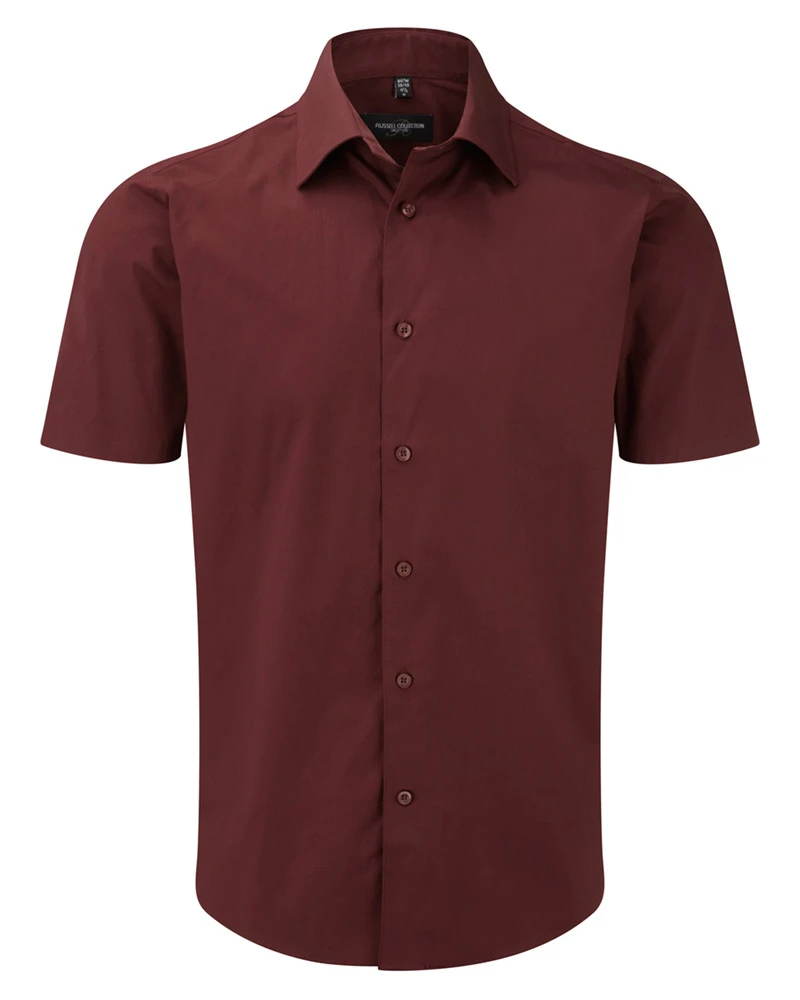Gramáž: 140 g/m²; Materiál: 97% bavlna, 3% elastanový popelín; Vypasovaná košile s krátkým rukávem; Vhodný a lehce elastický materiál, polootevřený límec s vyztužením, barevně sladěné knoflíky, páska za krkem, vypasovaný střih, zaoblený lem, náhradní knoflíky, snadné ošetřování; Certifikáty: STANDARD 100 by OEKO-TEX®; WRAP