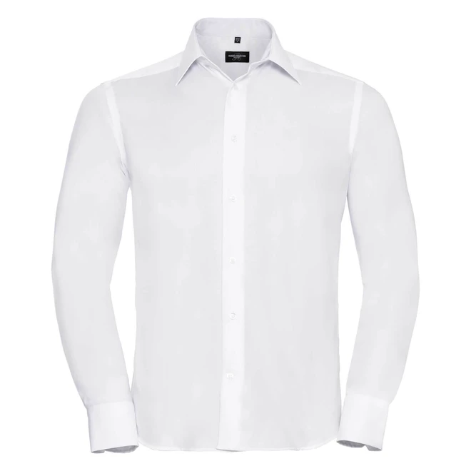 Gramáž: 120 g/m²; Materiál: 100% bavlněný mikrokepr; Pánská košile Ultimate Non-iron s dlouhými rukávem; Není nutné žehlit, dlouhý rukáv, zesílený límec, sedlo na ramenou, barevně sladěné knoflíky, manžety s 2 knoflíky a jedním na okraji, zaoblený spodní lem, vypasovaný střih, náhradní knoflíky. Certifikáty: STANDARD 100 by OEKO-TEX®; WRAP