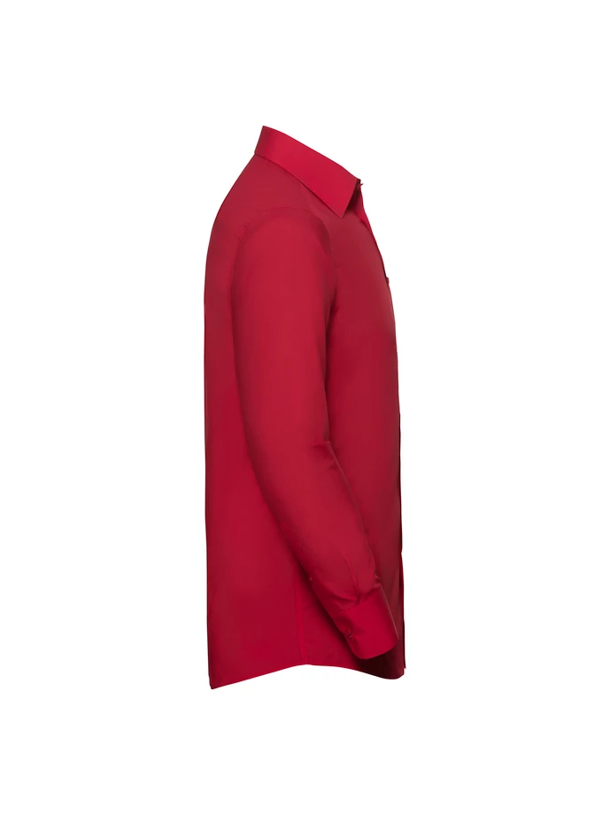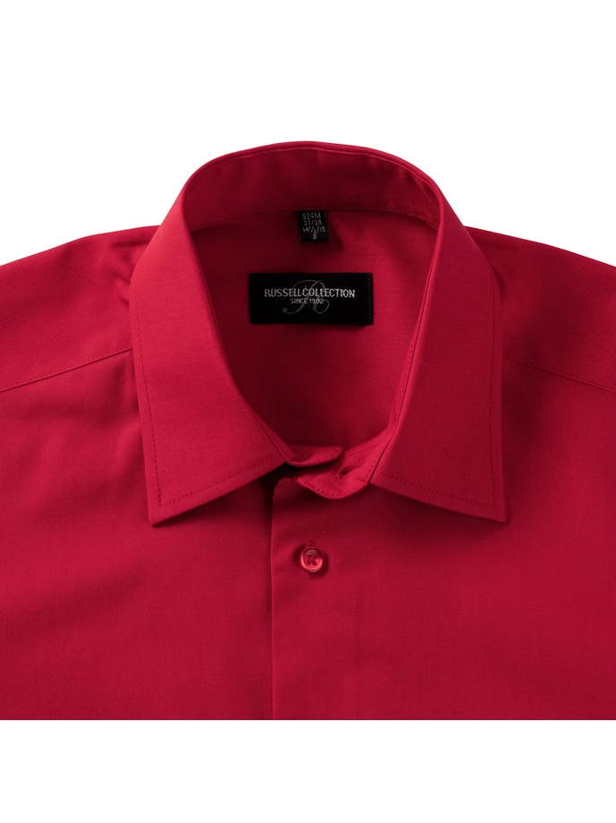 924M-Classic RedGramáž: 105 g/m² (white:110 g/m²); Materiál: 65% polyester, 35% bavlněný popelín; Pánská košile ze smíšených vláken s dlouhým rukávem; Módní vyztužený límec, stylové, zaoblené manžety nastavitelné pomocí 2 knoflíků, s místem na manžetové knoflíčky, zaoblený lem, vypasovaný střih, barevně laděné knoflíky, dlouhý rukáv, snadné ošetřování, náhradní knoflíky; Certifikáty: STANDARD 100 by OEKO-TEX®; WRAP