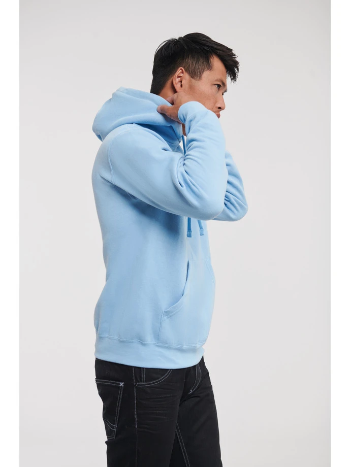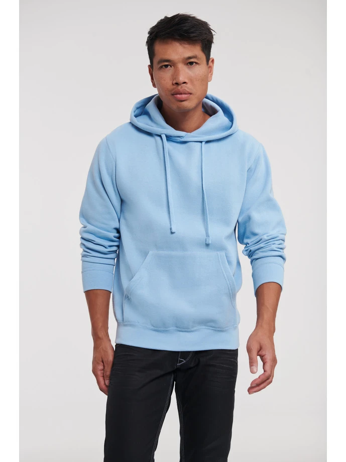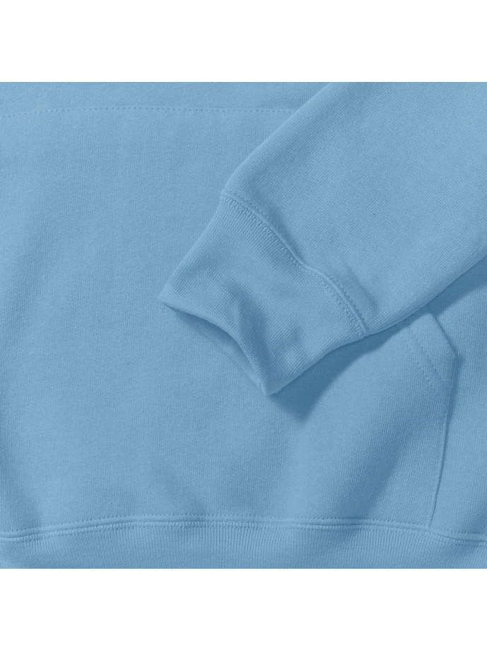 575M-SkyGramáž: 295 g/m²; Materiál: 50% česaná, prstencově spřádaná bavlna, 50% polyester (Light Oxford: 53% bavlna, 47% polyester); Kapuce s plochou stahovací šňůrkou, vypasované rukávy, klokaní kapsa, kapuce s dekorativním švem, zpevňující páska za krkem se strukturou "rybí kost", bez bočních švů; Certifikáty: STANDARD 100 by OEKO-TEX®; WRAP