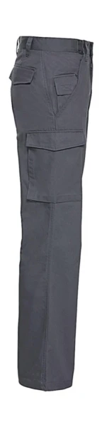 Gramáž: 245 g/m²; Materiál: 65% polyester, 35% bavlna twill; Pracovní kalhoty s délkou 34”. Elastický pas a pohodlný střih, módní design, dvě zadní kapsy s klopami, kapsa na mobil, našitá kapsa na pravé nohavici. Dostupné ve 2 délkách: R (délka 32"), L (délka 34"); Certifikáty: STANDARD 100 by OEKO-TEX®; WRAP