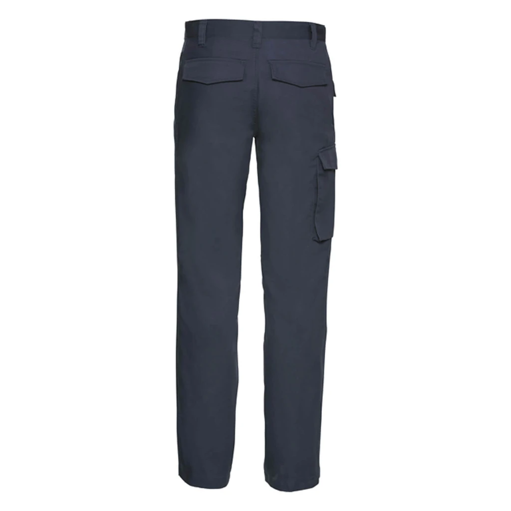 Gramáž: 245 g/m²; Materiál: 65% polyester, 35% bavlna twill; Pracovní kalhoty s délkou 34”. Elastický pas a pohodlný střih, módní design, dvě zadní kapsy s klopami, kapsa na mobil, našitá kapsa na pravé nohavici. Dostupné ve 2 délkách: R (délka 32"), L (délka 34"); Certifikáty: STANDARD 100 by OEKO-TEX®; WRAP