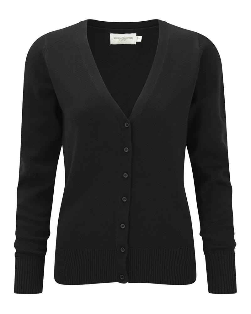 Gramáž: 275 g/m²; Materiál: 50% bavlna, 50% akryl; Dámský pletený kardigan s V-výstřihem; Snadno ošetřovatelný materiál CottonBlend™, hladce pletený, úzká obruba kolem výstřihu do "V", barevně sladěné knoflíky, široké náplety na rukávech a spodním lemu, boční švy. Certifikáty: STANDARD 100 by OEKO-TEX®; WRAP
