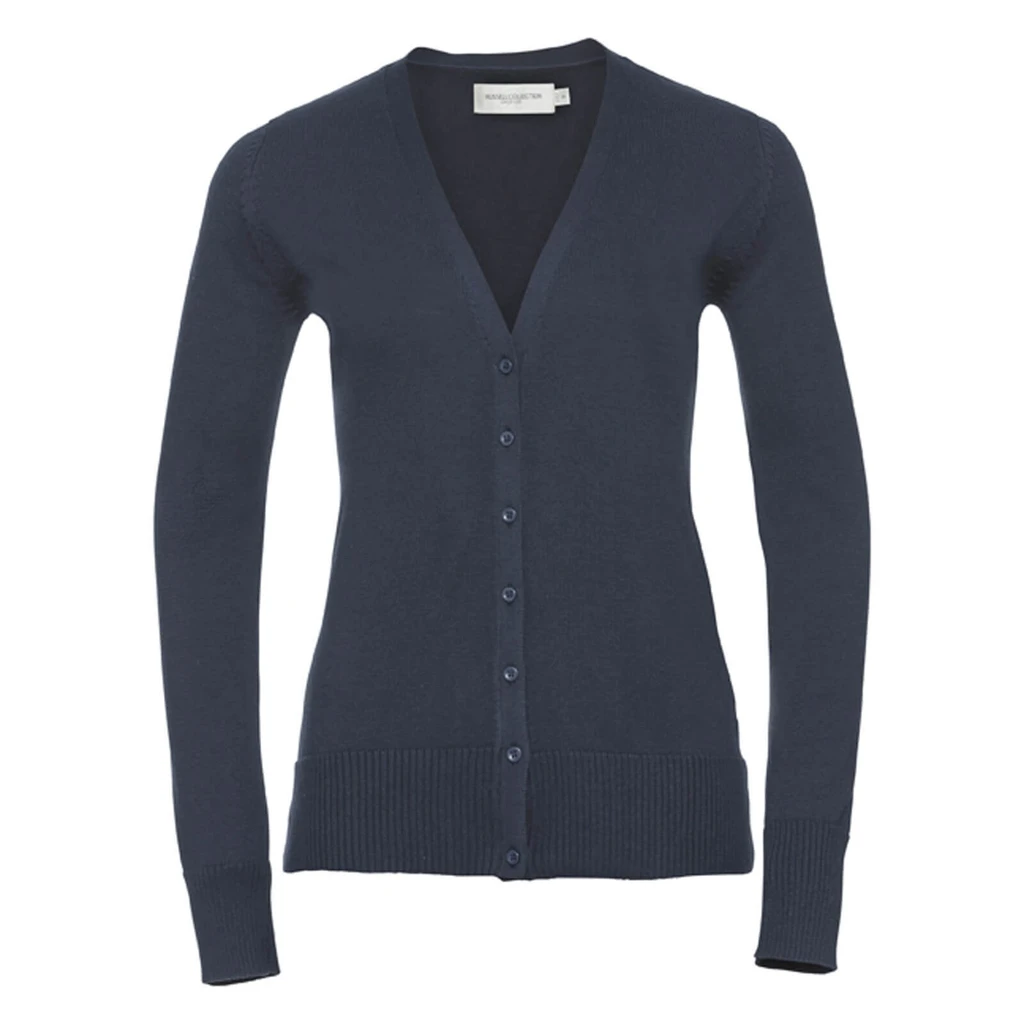 Gramáž: 275 g/m²; Materiál: 50% bavlna, 50% akryl; Dámský pletený kardigan s V-výstřihem; Snadno ošetřovatelný materiál CottonBlend™, hladce pletený, úzká obruba kolem výstřihu do "V", barevně sladěné knoflíky, široké náplety na rukávech a spodním lemu, boční švy. Certifikáty: STANDARD 100 by OEKO-TEX®; WRAP