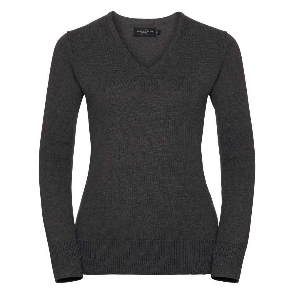 Gramáž: 275 g/m²; Materiál: 50% bavlna, 50% akryl; Dámský svetr s V-výstřihem; Hladce pletený, výstřih do "V" s úzkou obrubou, široké náplety na rukávech a spodním lemu svetru, boční švy. Certifikáty: STANDARD 100 by OEKO-TEX®; WRAP
