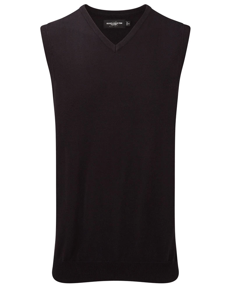 Gramáž: 275 g/m²; Materiál: 50% bavlna, 50% akryl; Pánská pletená vesta; Hladce pletená látka CottonBlend™, výstřih do "V", úzká obruba kolem výstřihu a v průramcích, široký náplet u dolního okraje, boční švy. Certifikáty: STANDARD 100 by OEKO-TEX®; WRAP