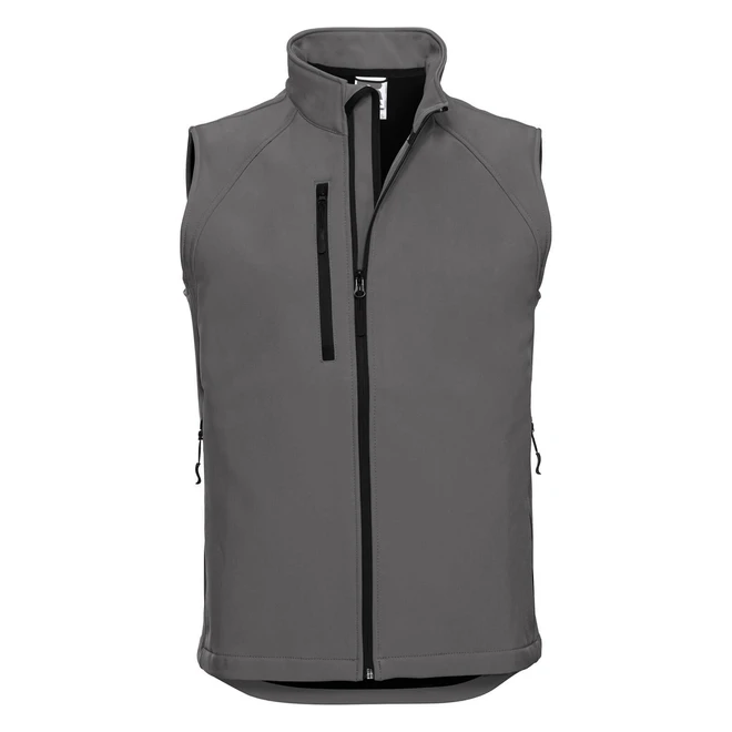 Gramáž: 340 g/m²; Materiál: 92% polyester, 8% elastan; Podšívka: 100 % polyester microfleece; Softshellová vesta; Prodyšný trojvrstvý softshell odolný proti větru a dešti, různé kapsy na zip, dlouhý zip s ochranou na bradu, šňůrka ve spodním lemu se zarážkami, prodloužená zadní část. Certifikáty: STANDARD 100 by OEKO-TEX®; WRAP