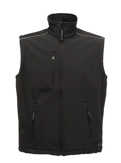 Odolná hřejivá tkaná strečová ripstopová softshellová tkanina, durazonové polyamidové překryvy v místech opotřebení pro větší pevnost a odolnost, odolná vodoodpudivá úprava Atl, zip po celé délce vesty s vnitřní ochranou zipu, 2 spodní kapsy na zip a 1 náprsní kapsa na zip, reflexní lem na přední a zadní straně, nastavitelný lem s šokovou šňůrkou