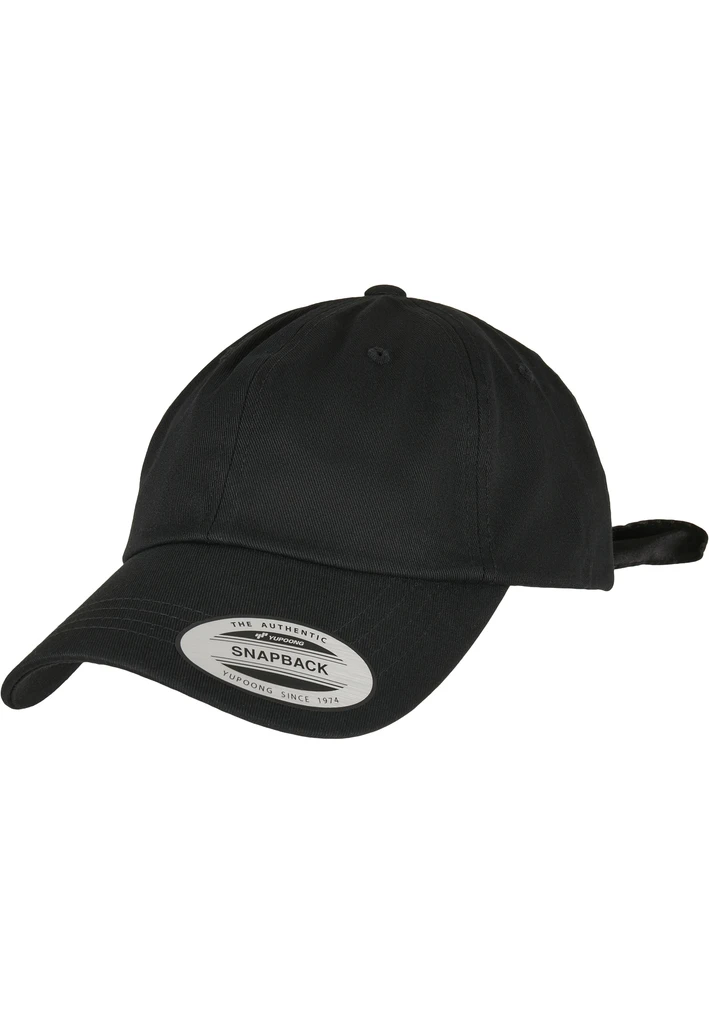 Čepice a šátek - klasická kombinace. Ne tak často se však stává, že byste oba doplňky našli zkombinované v jednom kusu, jako je tomu například u kšiltovky Satin Bow Snapback. Místo typické kovové spony je tato jednobarevná kšiltovka vybavena lesklou saténovou mašlí ve stylu šátku - včetně wow efektu.
