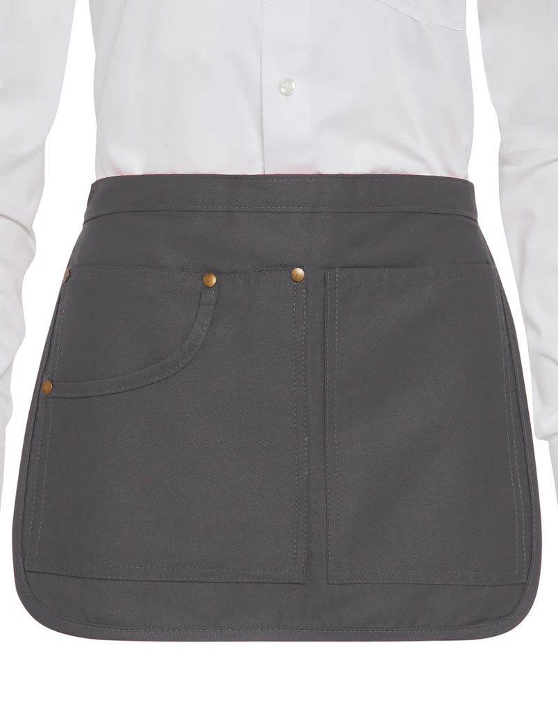 Tato praktická zástěra s pouzdrem, která se hodí do interiéru nebo na terasu, má několik navržených kapes se starožitnými mosaznými nýty a také se zapíná na starožitnou mosaznou přezku kolem pasu. Starožitná mosazná karabina dodává funkčnost a bezpečnost i moderní vzhled. K dispozici ve 3 základních barvách, je to MUST HAVE pro každý tvrdě pracující tým. V závislosti na použití se dá nosit vepředu nebo na bocích kolem pasu.