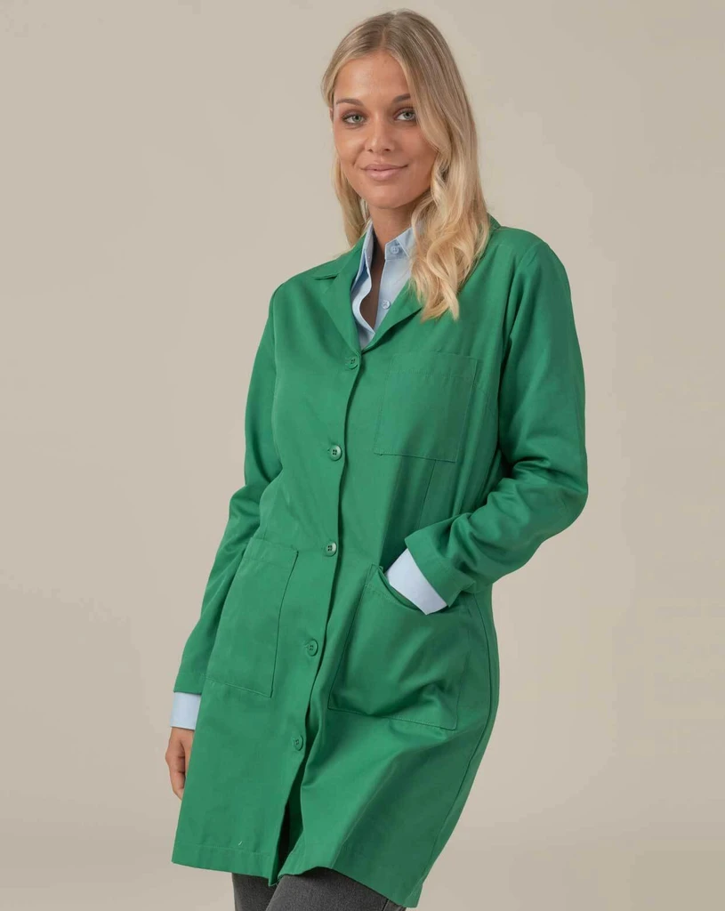 5 předních knoflíků 4 dírky bez lemu, odpovídající základní barvě.