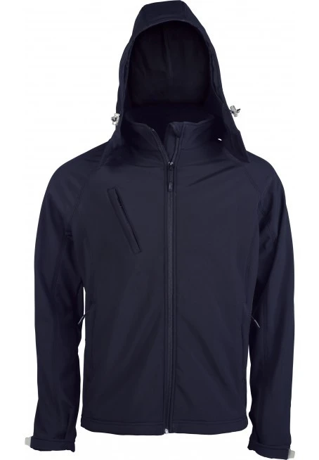 Raglánové rukávy, nastavitelné manžety, zip po celé délce, 2 přední kapsy na zip, 1 náprsní kapsa na pravé straně, odepínací kapuce se stahovací šňůrkou.