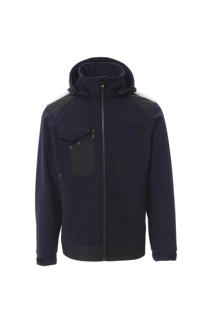 WP/MM 8000 MVP/GR 5000 Pracovní sofshellová ergonomicky zpracovaná bunda, úzké rukávy, dlouhý plastový SBS zip (kovový jezdec s aretací "autolock"), dvě postranní kapsy na zip, víceúčelová kapsa na hrudi se skrytým pouzdrem na jmenovku a uzavírací klopou LOCK SYSTEM, reflexní pruhy 3M na ramenou, manžety s páskem na suchý zip, odnímatelná kapuce a stahovací šňůrka se zarážkou