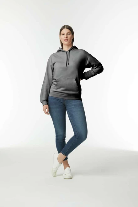 Softstyle Midweight Fleece se vyznačuje útulným, kartáčovaným vnitřkem a 100% prstencovou bavlněnou stranou, ideální pro různé techniky zdobení šetrné k bavlně.