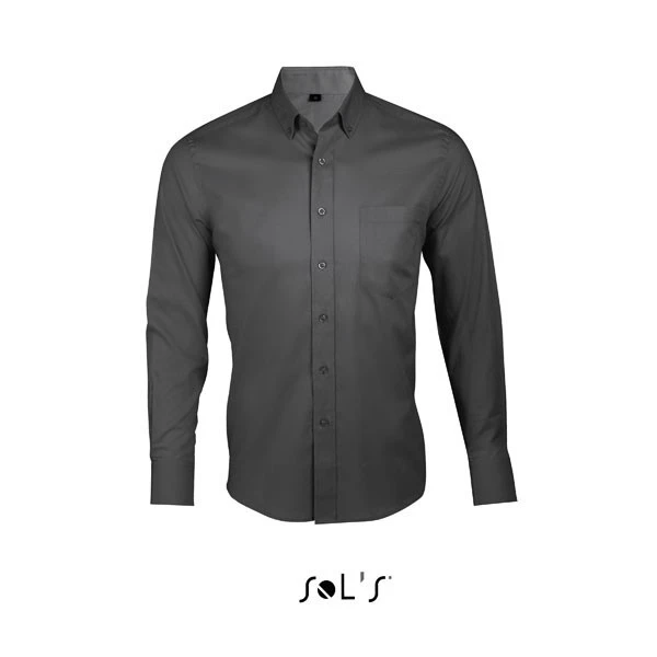 Kvalita: kepr v nežehlivé úpravě - 100% kepr, hmotnost: 120 g/m²; Rovsný střih, dlouhé rukávy, klasický límec s 2 knoflíčky, zapínání na 7 knoflíků tón v tónu, nastavitelné manžety s 2 knoflíčky, kapsa na levé straně, 2 záševky na zádech, kulatý spodní lem, Přiléhavý střih