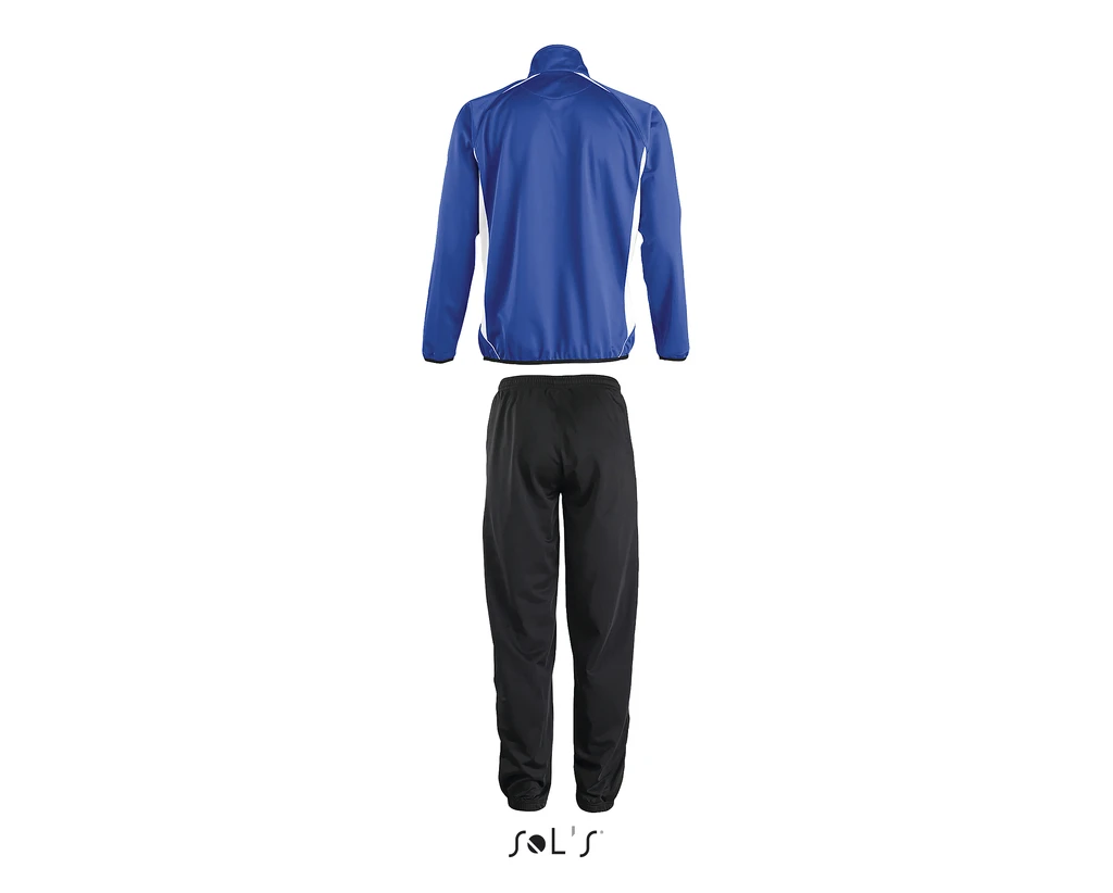 KVALITA: 100% lesklý interlock polyester; Bunda - pružné šikmé obroubení manžet a v pase, hlavní zapínání na zip, 2 kapsy na zip, velké kontrastní prodyšné látkové vložky na stranách a na rukávech, zajišťující kontrolu pocení, rukávy s pružným šikmým obroubením manžet, kontrastní vyšívané logo a značka; Tepláky - elastický pas se stahovací šňůrkou, 2 kapsy na zip, zúžená spodní část s klínkem ze síťoviny, Kontrastní vsadky ze síťoviny, kontrastní vyšívané logo a značka