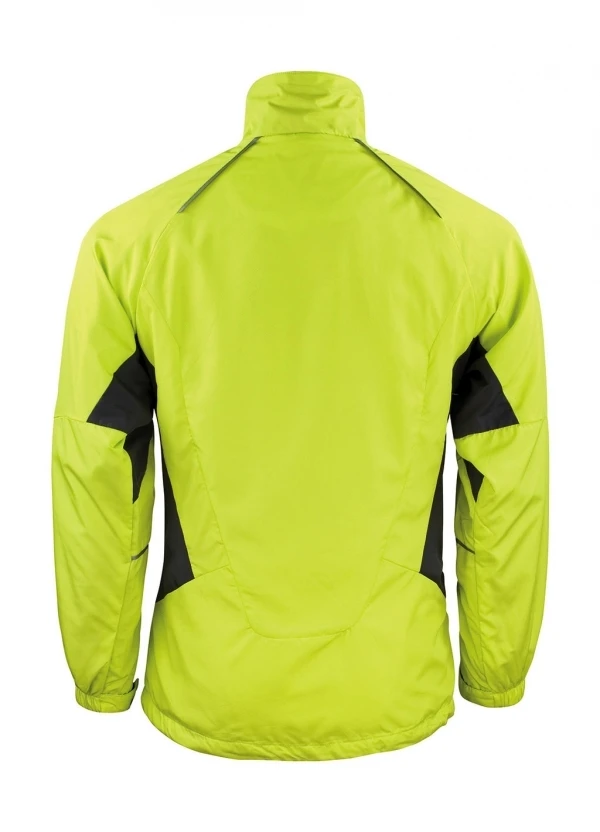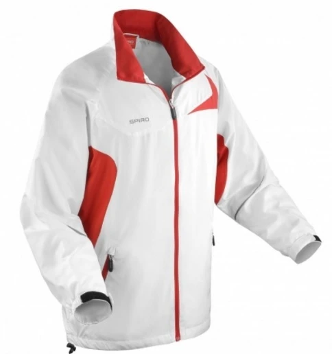 Větru a vodě vzdorná, prodyšná a rychleschnoucí, raglánové rukávy, dlouhý zip v kontrastní barvě, reflexní logo Spiro, nastavitelné manžety, 2 boční kapsy, unisex, přístup pro dekoraci na levé straně, vhodná pro transferový tisk a výšivku.