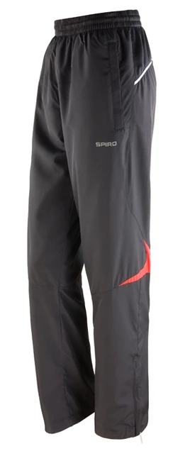 Vložka ze síťoviny, elastický pas se stahovací šňůrkou, voděodolné, rychleschnoucí, reflexní logo Spiro, ventilační panely, 2 postranní kapsy, kapsa na klíč, zip na dolní části nohavice, vhodné pro transferový tisk a výšivku.