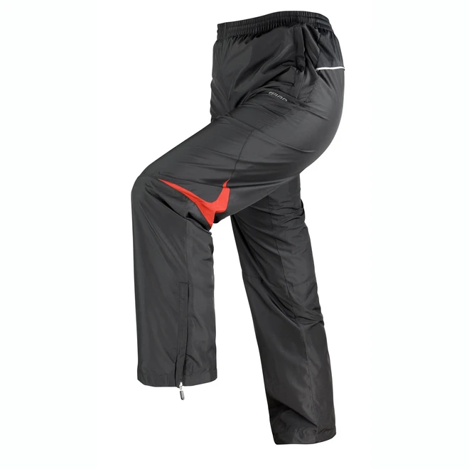 Vložka ze síťoviny, velice lehké, elastický pas se stahovací šňůrkou, voděodolné, rychleschnoucí, reflexní logo Spiro, ventilační panely, 2 postranní kapsy, kapsa na klíč, zip na dolní části nohavice, vhodné pro transferový tisk a výšivku.