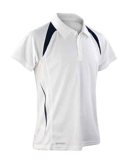 Prodyšná látka Cool-Dry Mesh, struktura včelího plastu, výztužná páska u krku, raglánové rukávy s kontrastními vsadkami, zapínání na 3 knoflíky, postranní prodyšné vsadky, logo Spiro na přední straně dole, prodloužená zádová část, dvojité prošití rukávů a dolního okraje, boční švy, vhodná pro potisk nebo výšivku.