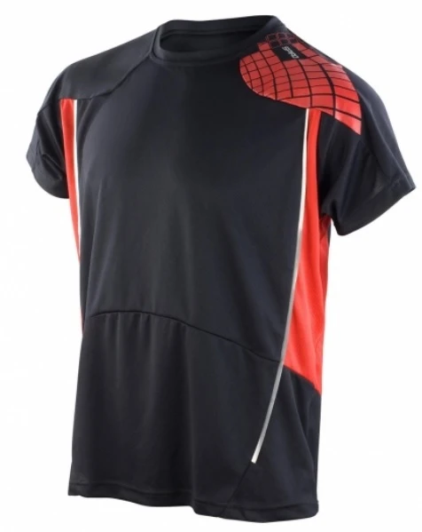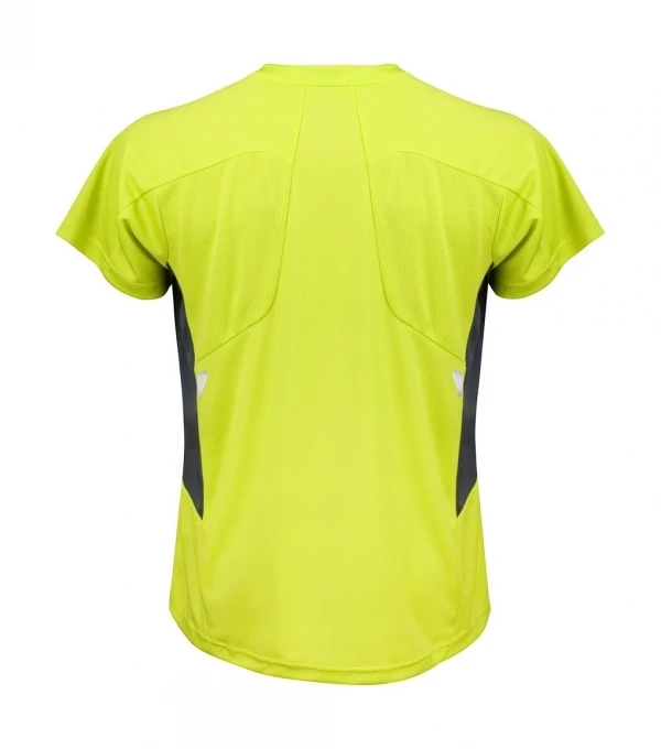 Prodyšná látka, výztužná páska u krku v kontrastní barvě, logo Spiro na levém rameni, na bocích kontrastní vsadky s reflexními pruhy, síťová vnitřní část na zádech pro lepší větrání, dvojité prošití rukávů a dolního okraje, boční švy, vhodná pro potisk nebo vyšívaní.