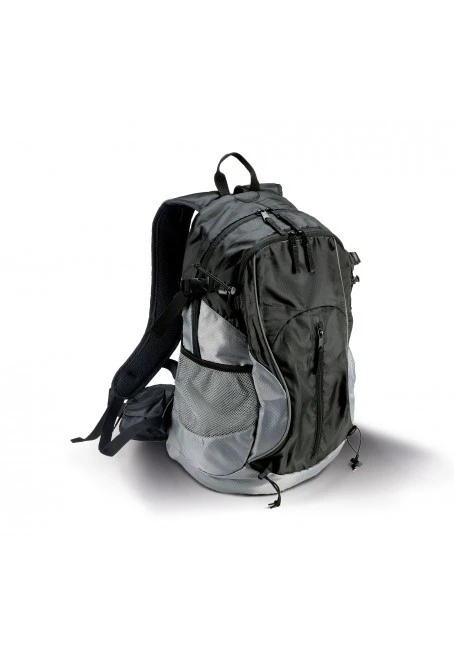 Vyztužené dno, přední kapsa na zip, 2 hlavní oddíly, boční síťované kapsy, elastické trekové držáky, nastavitelné ergonomické popruhy a pás, otvor pro vak s vodou. SBS zipy.
