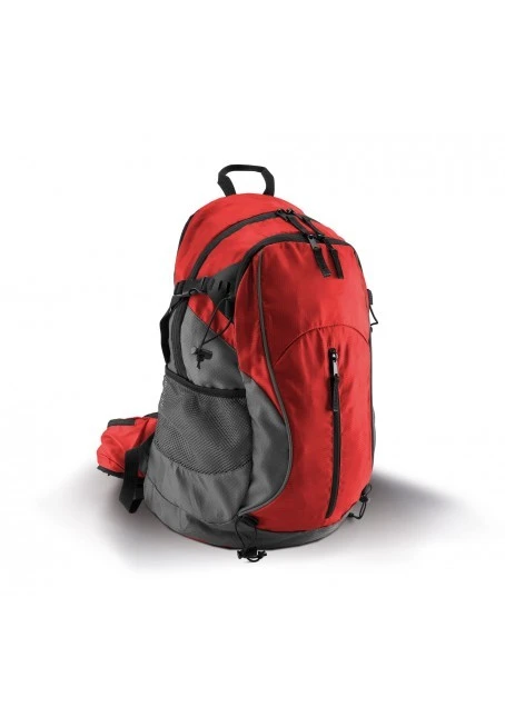 Vyztužené dno, přední kapsa na zip, 2 hlavní oddíly, boční síťované kapsy, elastické trekové držáky, nastavitelné ergonomické popruhy a pás, otvor pro vak s vodou. SBS zipy.
