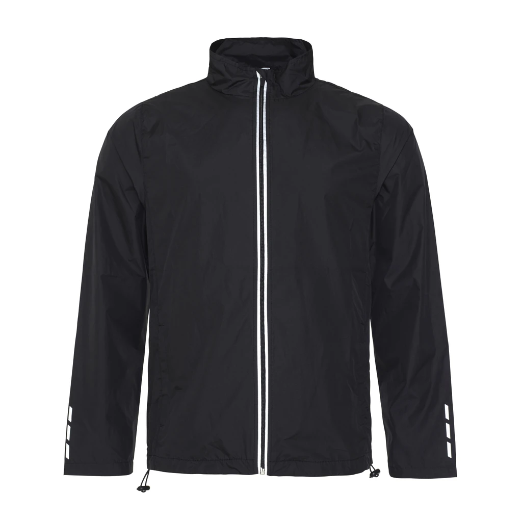 Lehký materiál, pohodlný střih, vodě a větru vzdorná, reflexní přední zip, reflexní potisk na zadní straně krku a na manžetách, 2 přední kapsy na zip, prodloužená zaoblená zadní část, stahovací spodní lem se zarážkami, ideální na běh a cyklistiku.