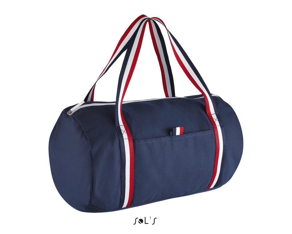 KVALITA: 100% bavlna - plátno; Mnohostranně použitelná sportovní taška, pruhovaná ucha, velký otvor s kontrastním zipem, 1 přední kapsa s pruhovanými detaily, 1 vnitřní kapsa; Objem: 22 l; Rozměry: 45 x 25 x 25 cm