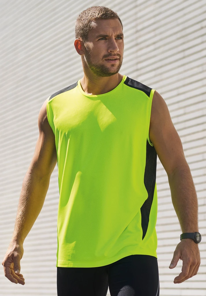 Rychleschnoucí materiál. Velmi lehká a jemná tkanina navržena pro širokou škálu sportů. Vsadky ze síťoviny na bocích a ramenou - pro větší volnost pohybu.