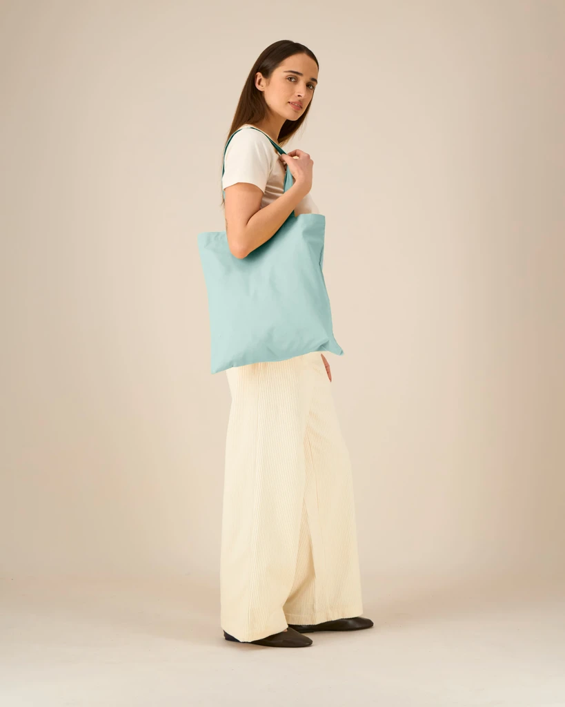 Dvojitě skládaný horní okraj pro pevnost a čistý povrch, dlouhé rukojeti se zesíleným křížovým stehem; Certifikáty: STANDARD 100 by OEKO-TEX®; GOTS - Global organic textile standard; Peta - Approved VEGAN; Fair wear