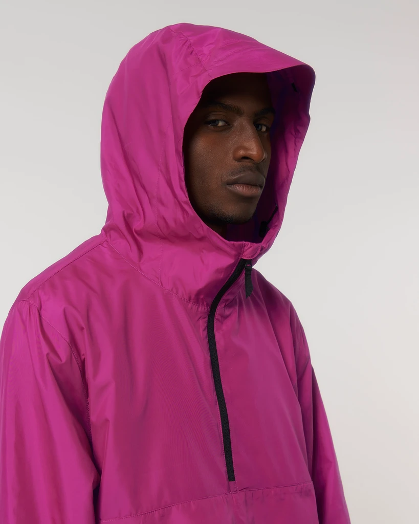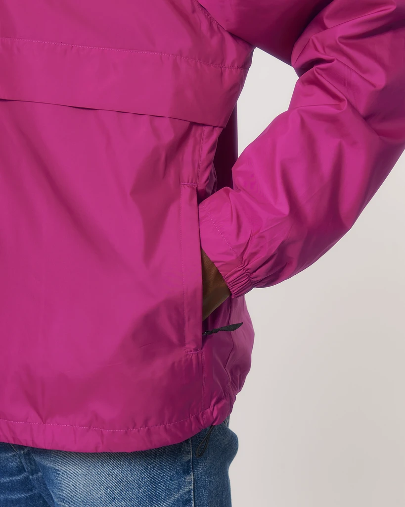 Materiál: 100% recyklovaný polyester, DWR bez fluoru; Gramáž: 75g/m²; Medium Fit střih, vsazené rukávy, prodloužená zadní délka se zakřiveným lemem pro ochranu, spodní lem s nastavitelnou plastovou zarážkou a elastickou šňůrkou, utěsněný kšilt kapuce, dvouvrstvá kapuce s nastavitelnou plastovou zarážkou a elastickou šňůrkou na vnitřní straně, nylonový zip vpředu uprostřed s ochranou brady, postranní kapsy na zip s přídavným stahovákem, klopa vpředu a vzadu, poloelastická manžeta na rukávu, půlměsíc na zadní straně krku, vnitřní otvor na zip u spodního lemu a vnitřní poutko se zapínáním na průramek pro snadný přístup pro dekoraci; Certifikáty: Global Recycled Standard (GRS), Fair Wair, STANDARD 100 by OEKO-TEX®, Peta - Approved VEGAN