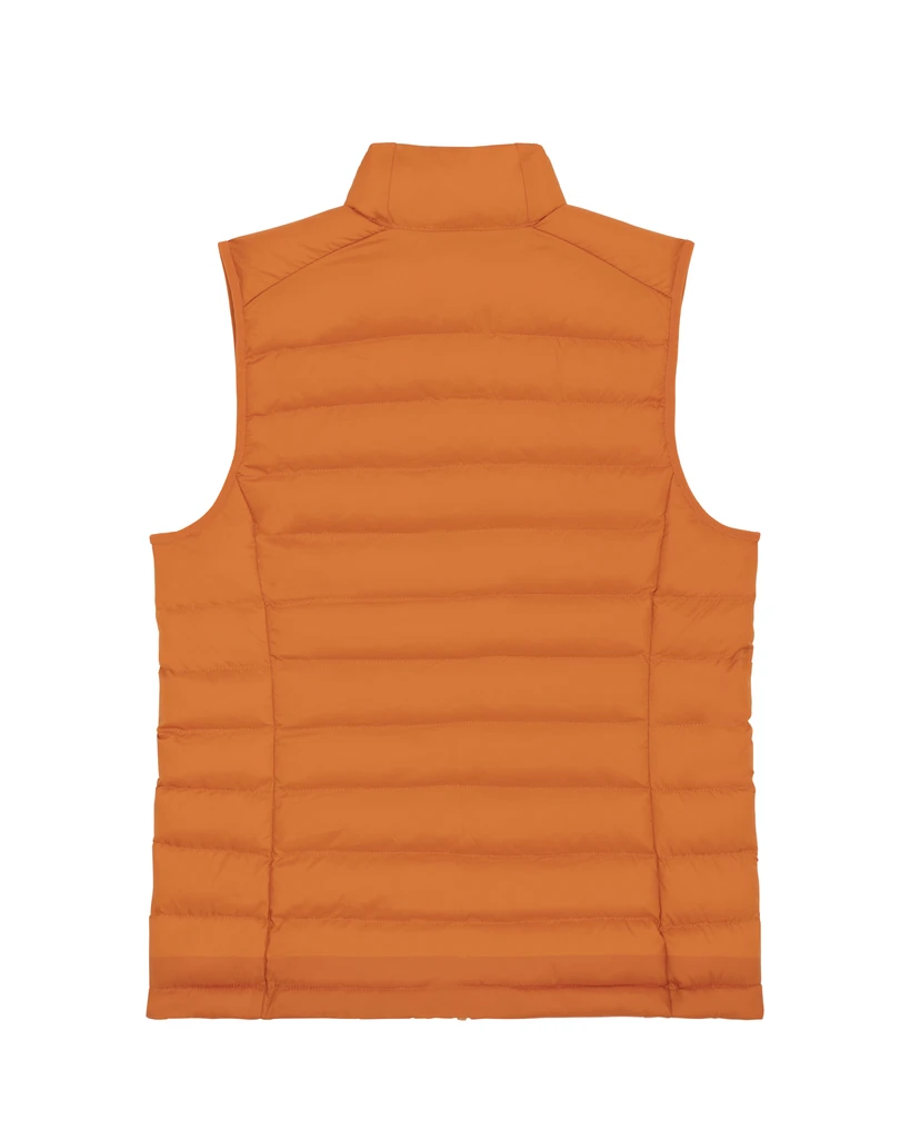 Materiál: 100% recyklovaný polyester, DWR bez fluoru; Gramáž: 75g/m²; Přiléhavý střih, bez rukávů, vysoký límec, obrácený nylonový zip vpředu uprostřed, průhmatové kapsy na zip s extra stahovákem, zavazování elastickou páskou v průramku, plně prošívaná, boční panely pro lepší tvar, vnitřní vázané švy, spodní lem s nastavitelnou plastovou zarážkou a elastickou šňůrkou; Certifikáty: Global Recycled Standard (GRS), Fair Wair, STANDARD 100 by OEKO-TEX®, Peta - Approved VEGAN