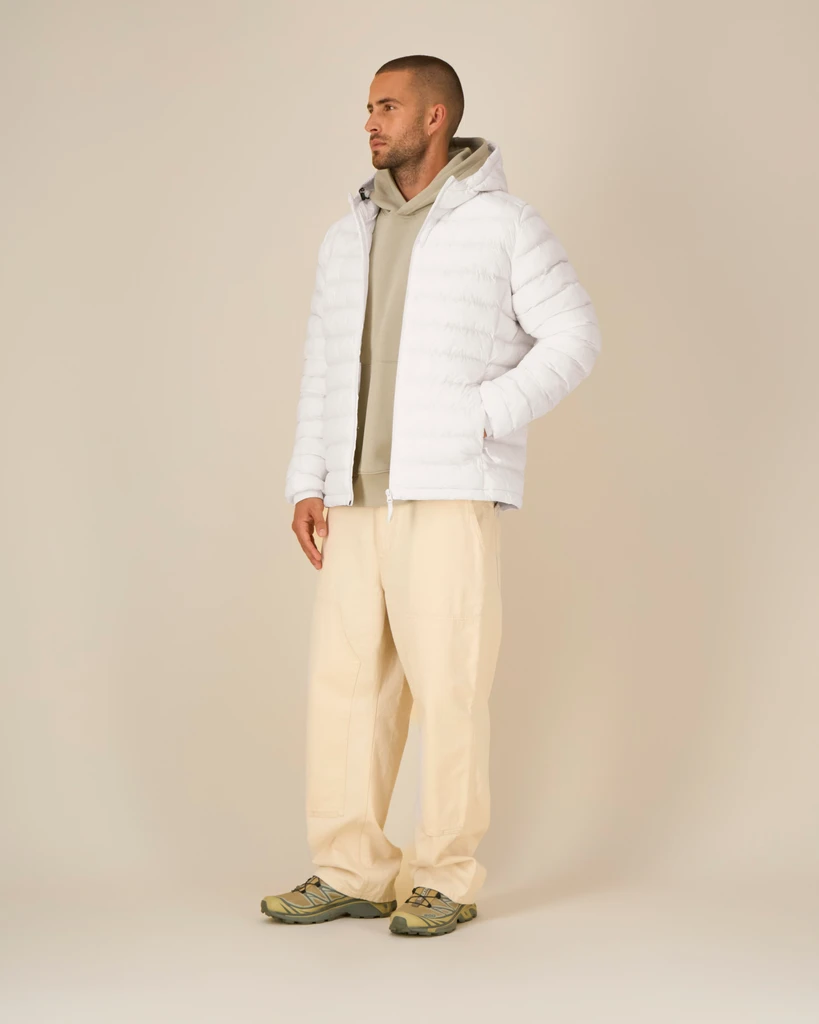 | Material | Vnější materiál: plátnová vazba, 100 % nylon – recyklovaný, odolný proti vodě, bez fluoru DWR |