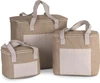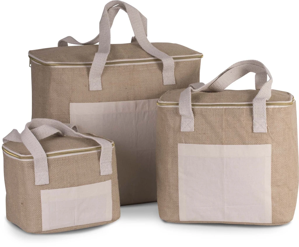 Vnější kapsa z bavlny, vnitřní chladící část z hliníku, izolační pěna s vysokou hustotou, bavlněná držadla.