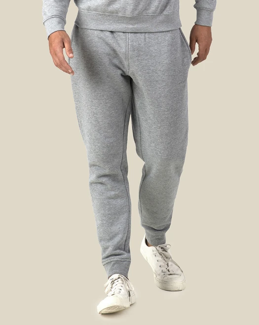 Pánské plyšové jogger kalhoty s bočními kapsami, manžetami na spodním lemu a elastickým pasem s nastavitelnou šňůrkou.