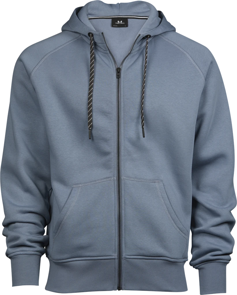 Egyptská bavlna s dlouhými vlákny, 3-niťový materiál pro větší hladkost povrchu, dvakrát barvená pro intenzivní barvu, uvnitř kartáčovaná látka, dvouvrstvá kapuce, zip v celé délce, našité kapsy, všechny patenty s přídavkem lycry pro větší trvanlivost, dvojité švy.