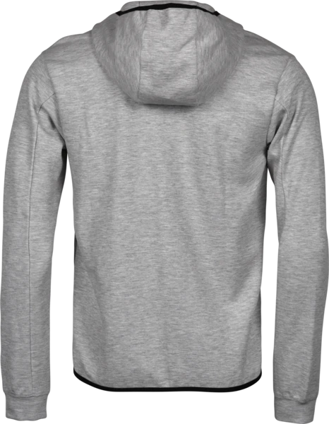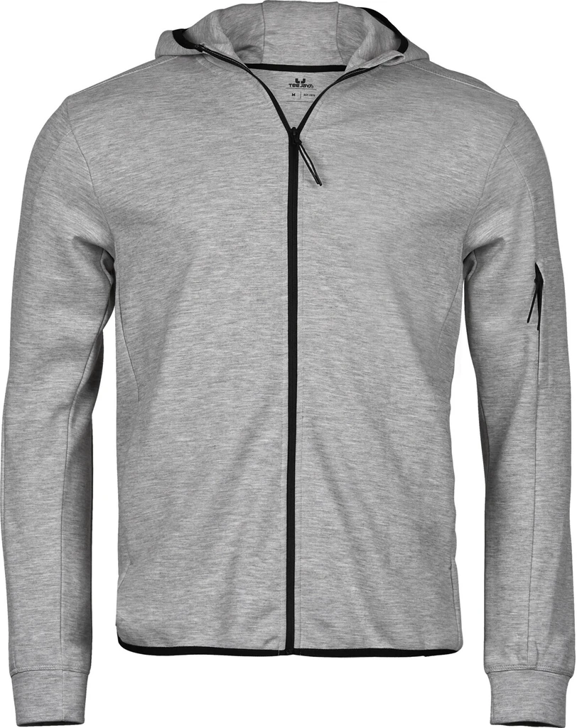 Sportovní mikina na zip s kapucí vyrobená ze směsi bavlny a polyesteru je navržena tak, aby byla měkká a pohodlná. Má elastickou podlepenou kapuci a lem, dvě přední kapsy a kapsu na rukávu na zip. Funkční design atletických topů se hodí jak k oblečení pro volný čas, tak i k oděvu zaměstnanců.