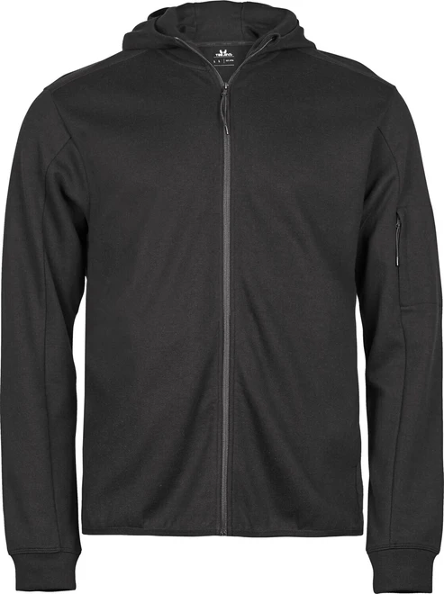 Sportovní mikina na zip s kapucí vyrobená ze směsi bavlny a polyesteru je navržena tak, aby byla měkká a pohodlná. Má elastickou podlepenou kapuci a lem, dvě přední kapsy a kapsu na rukávu na zip. Funkční design atletických topů se hodí jak k oblečení pro volný čas, tak i k oděvu zaměstnanců.