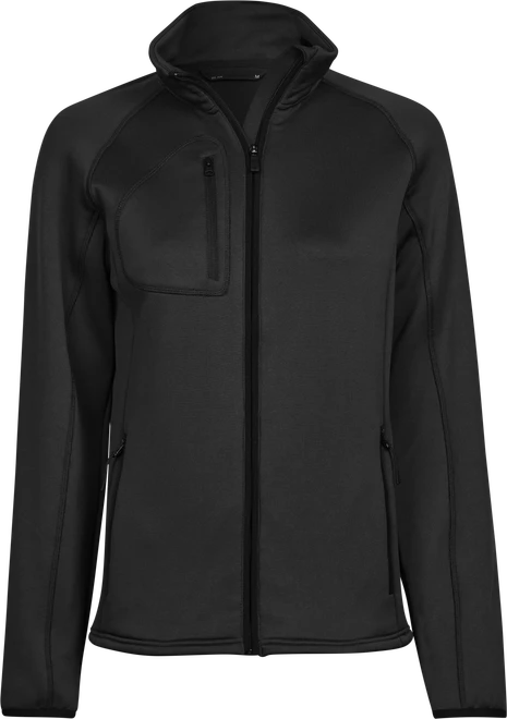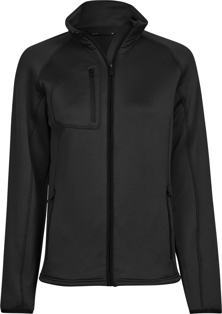 Tato přizpůsobená dámská střední vrstva ze strečového fleecu je navržena tak, aby vás udržela v teple a pohodlí při řadě outdoorových aktivit. Vyrobeno ze super měkké prémiové pružné fleece tkaniny s elastanem, uvnitř počesané. Má 2 velké přední kapsy, náprsní kapsu, ochranu brady, elastické manžety a spodní lem. Perfektní jako střední vrstva nebo funkční bunda.