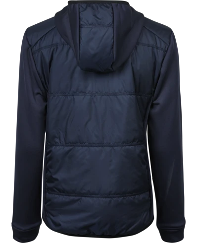 Tato dámská hybridně strečová bunda s kapucí je vyrobena z polyesterové tkaniny 300T v kombinaci se strečovými fleecovými panely a rukávy. Je izolován prémiovou výplní DuPont™ na těle. Manžety a elastický lem na spodním lemu pro moderní vzhled. Disponuje kvalitními SBS zipy, vnitřní kapsou a 2 velkými skrytými předními kapsami. Díky kapuci je bunda extra pohodlná v chladnějších dnech.
