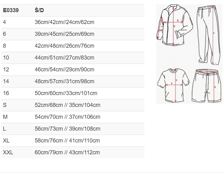 Vysoký límec, přední kapsy s lemem, manžety a pas v žebrovaném lemu 1x1, zip po celé délce, kalhoty s pružným pasem se dvěma bočními kapsami s kontrastním lemem, velmi příjemná vnitřní strana, odnímatelná cedulka, vhodné pro potisk sublimací, velikosti dostupné i pro děti.