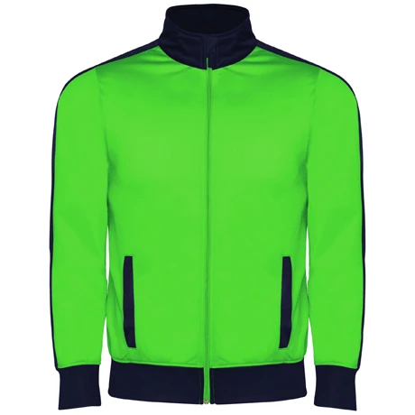 Unisex střih, vysoký límec se zapínáním na zip s krytkou na bradu, přední kapsy s kontrastním lemem, kontrastní manžety a žebrovaný lem, zip po celé délce, kalhoty s pružným pasem s dvěma bočními kapsami s kontrastním lemem, velmi příjemná vnitřní strana, odnímatelná cedulka, vhodné pro potisk sublimací, velikosti dostupné i pro děti.