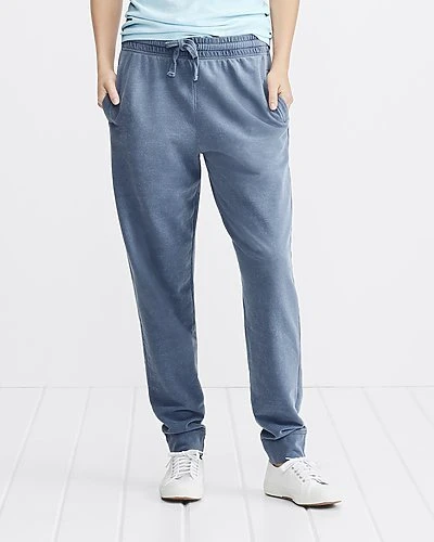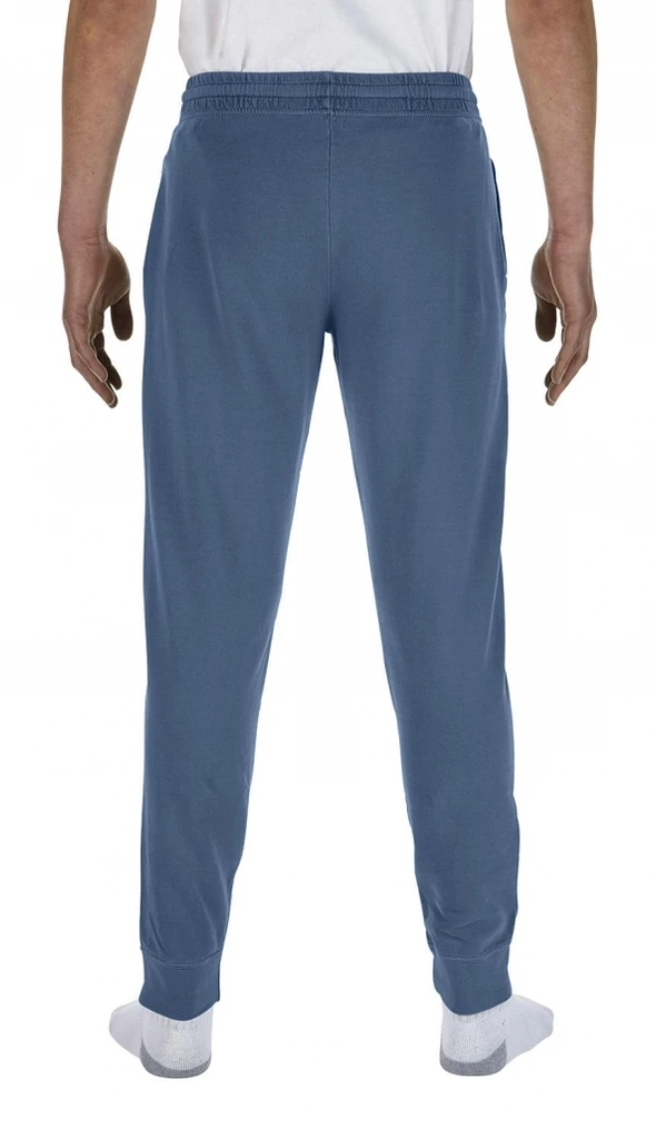 Předeprané, jednotlivě barvené (garment dye), vícenásobně prošitý pas s barevně ladící šňůrkou, postranní kapsy, žebrované manžety.
