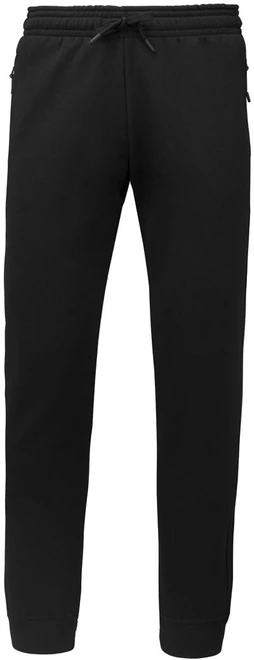 2 dekorativní boční kapsy na zip, 1 síťovaná kapsa a 1 kontrastní svítivá kapsa na telefon. Vzadu 1 našitá kapsa. Žebrované manžety na koncích nohavic.