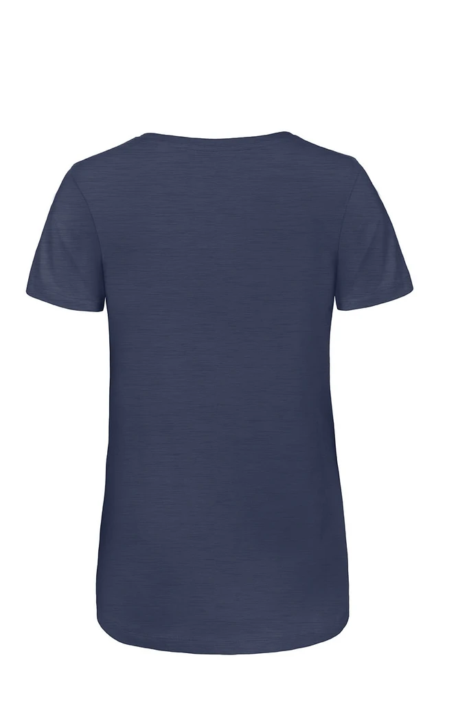 Hedvábně jemná "Triblend" single jersey, výstřih do "V", zpevňující páska u krku, tenký límec ze stejné tkaniny, dvojité prošití rukávů a dolního okraje, postranní švy, "B & C No Label" systém pro dokonalou změnu značky, velmi hladký a rovný povrch umožňuje jasný a ostrý tiskový výstup.