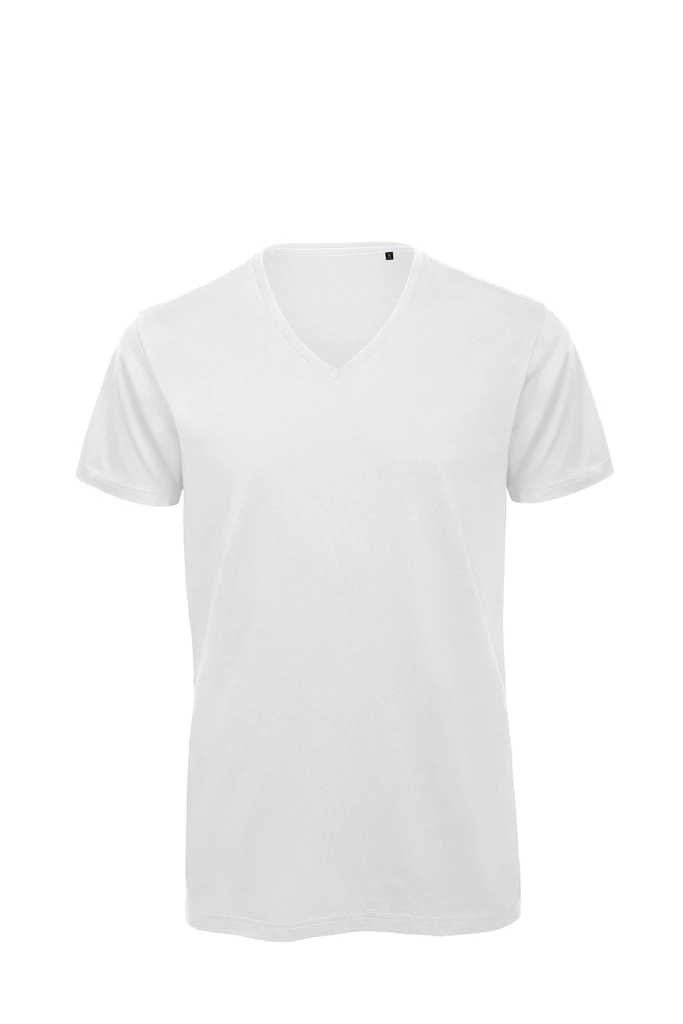 Single Jersey, tenké žebrování, výstřih do "V", zpevňující páska od ramena k rameni, dvojité prošití rukávů a dolního okraje, postranní švy, "B & C No Label" systém pro dokonalou změnu značky, velmi hladký a rovný povrch umožňuje jasné a ostré výsledky tisku, testováno a schváleno pro všechny standardní tiskové techniky používané na bavlně.