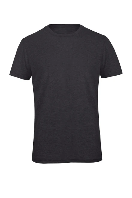 Hedvábně jemná "Triblend" single jersey, zpevňující páska od ramena k rameni, límec ze stejné tkaniny, dvojité prošití rukávů a dolního okraje, postranní švy,
