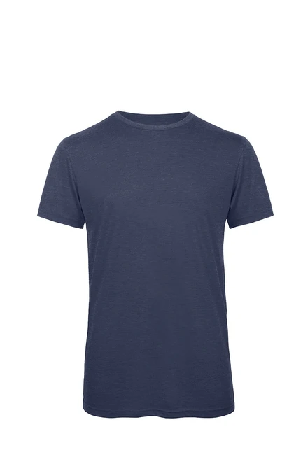 Hedvábně jemná "Triblend" single jersey, zpevňující páska od ramena k rameni, límec ze stejné tkaniny, dvojité prošití rukávů a dolního okraje, postranní švy,